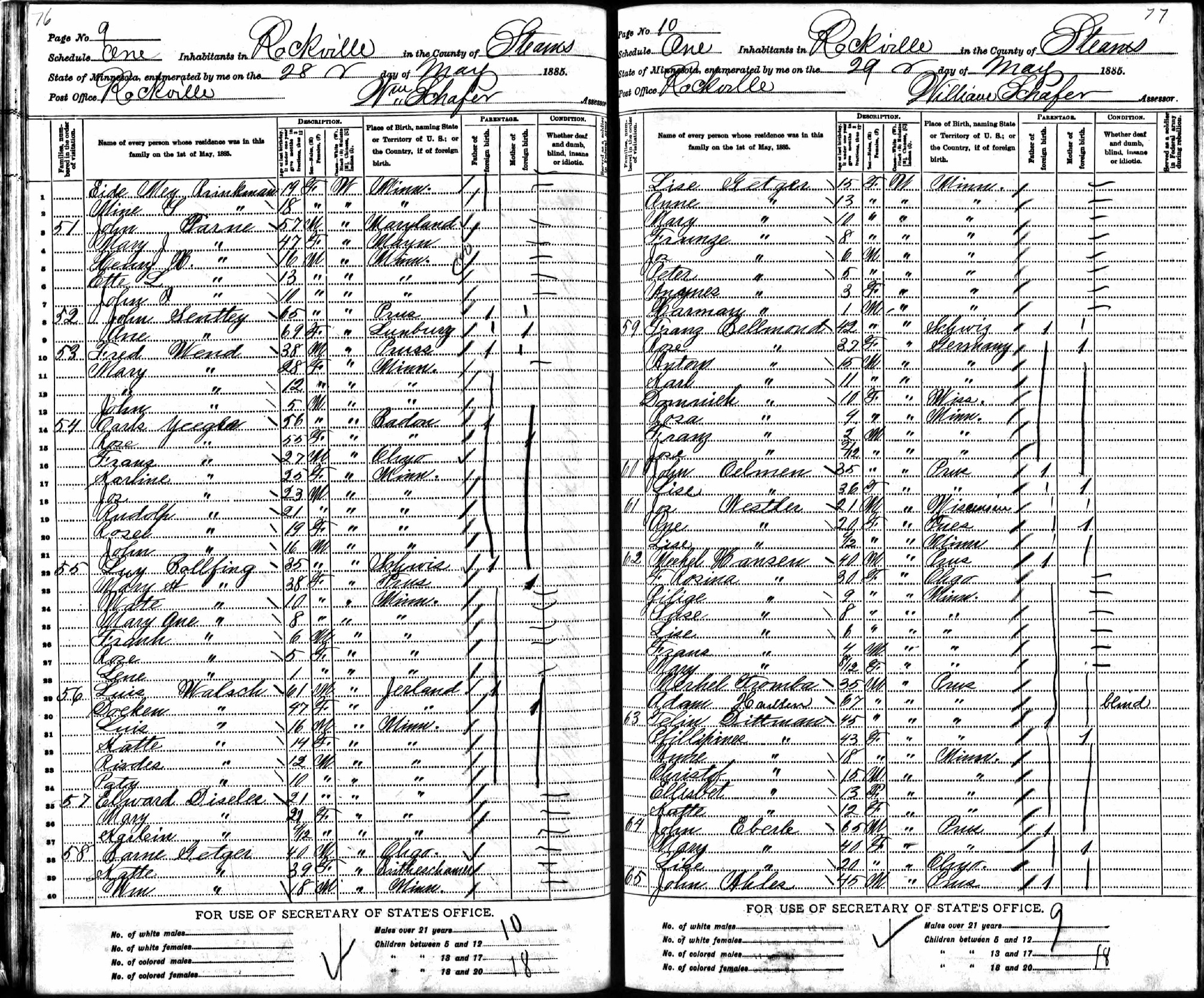 1885 Minnnesota Census, Rockville Township, Stearns County - p10 p11