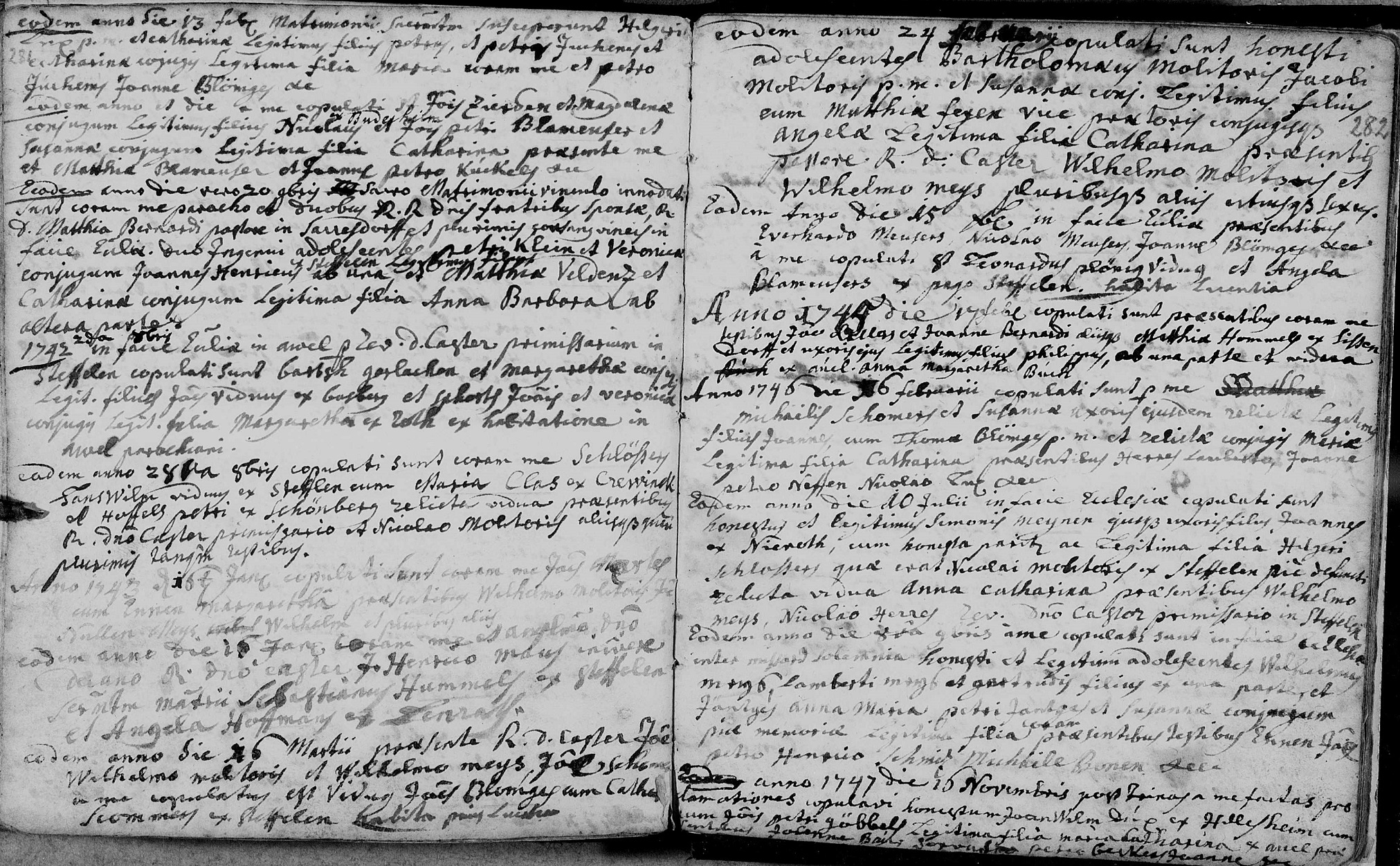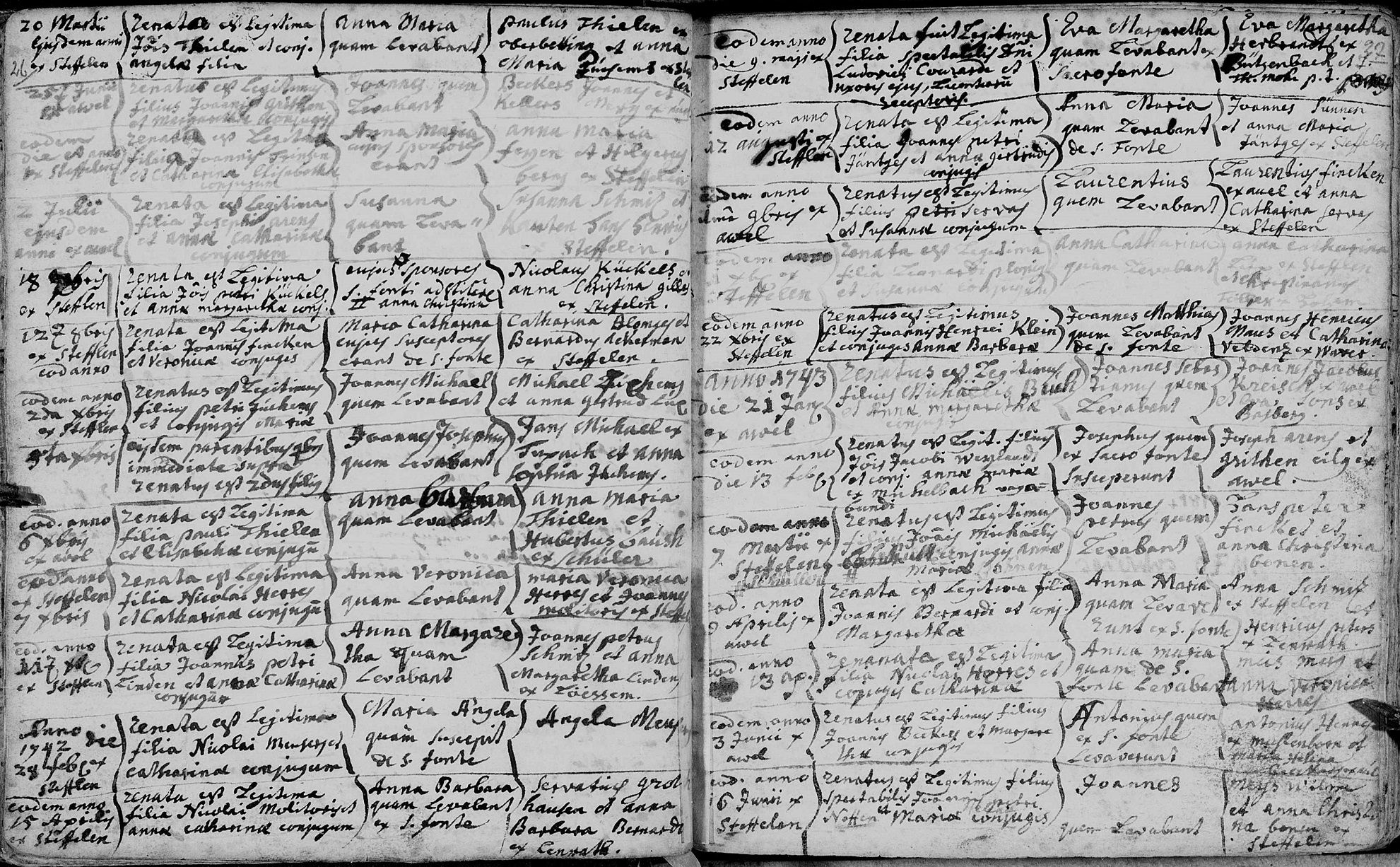 Peter Servas, widower, married Susanna Thielen on February 10, 1734 in Auel. Susanna was the daughter of Johann Thielen and Catharina ?