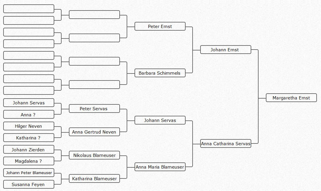 Margaretha's parents are believed to Johannes Ernst and Anna Catharina Servas.