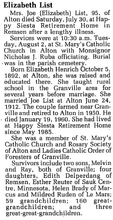 Death: July 30, 1988, Remsen, Plymouth County, Iowa