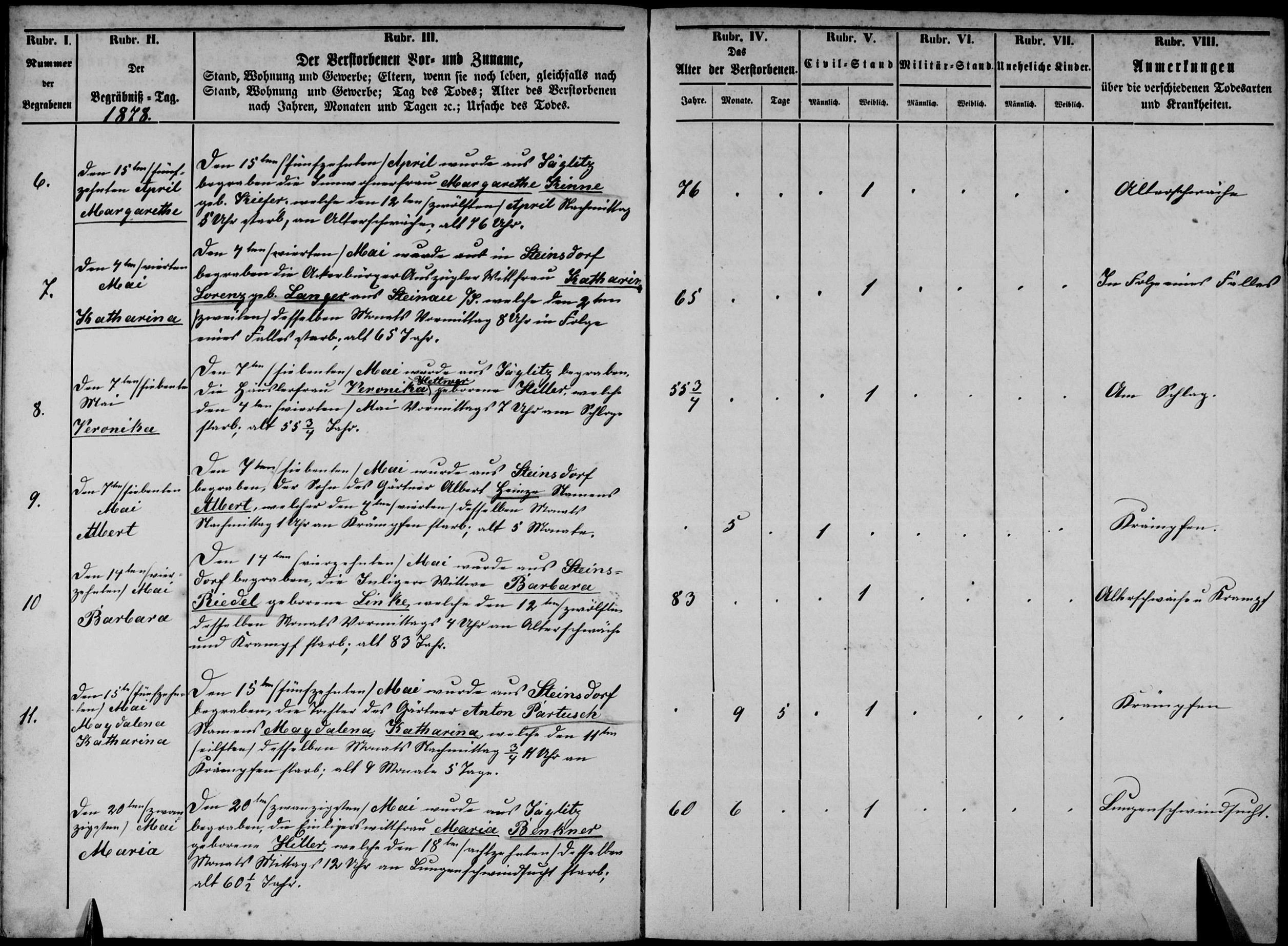 Death: May 14, 1878, Steinsdorf, Silesia, Prussia