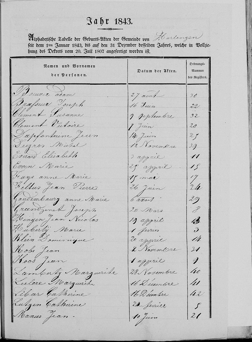 1843 Luxemburg Census, Tarchamps, Harlange