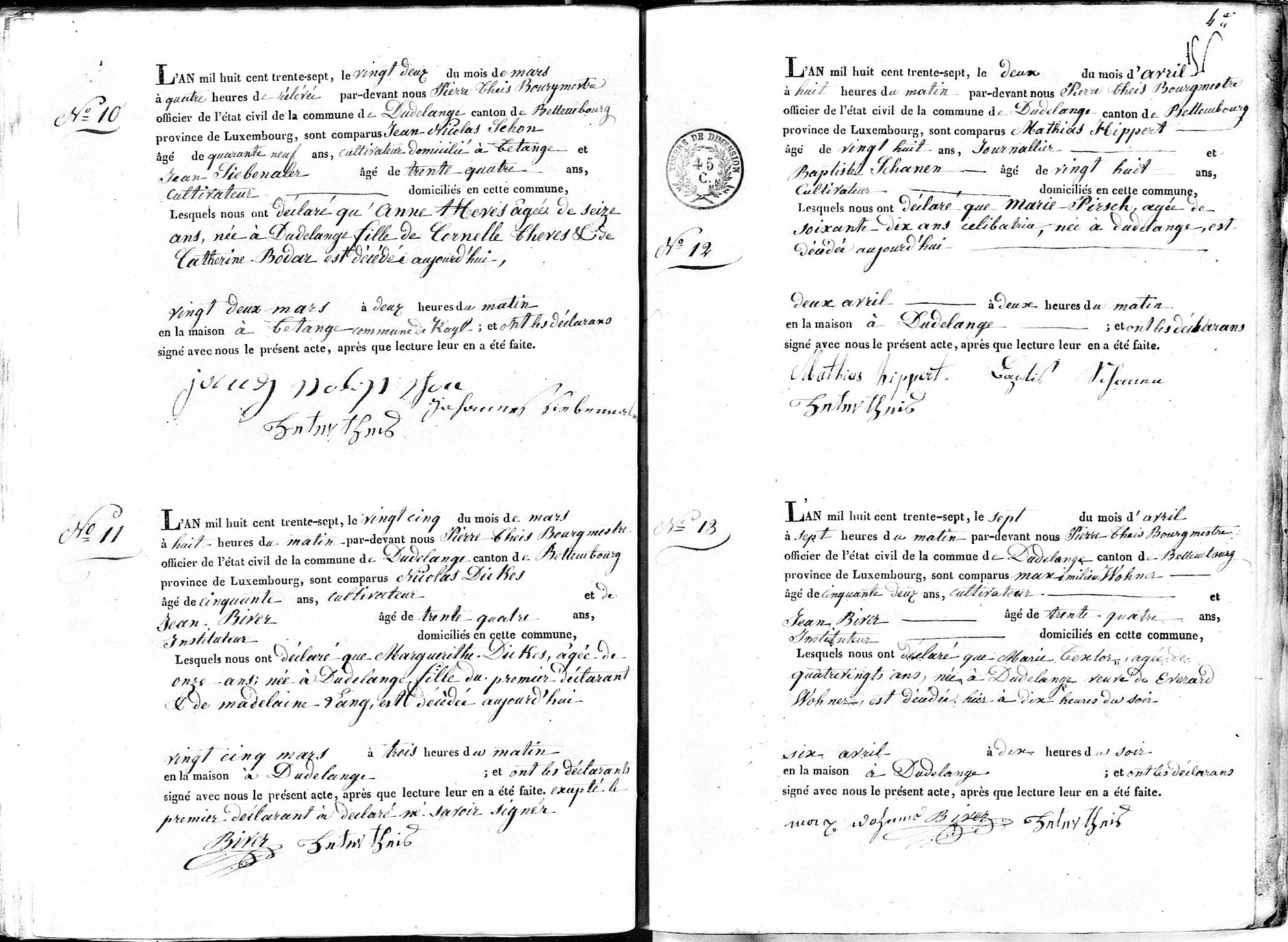 Nicolas Hippert, son of Jean Hippert and Catherine Theis, married Margaretha Everling, daughter of Nicolas Everling and Elisabeth Lambert, on September 25, 1757 in Hollerich Luxemburg.