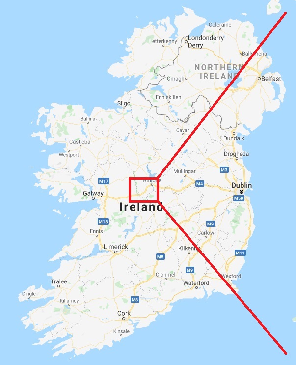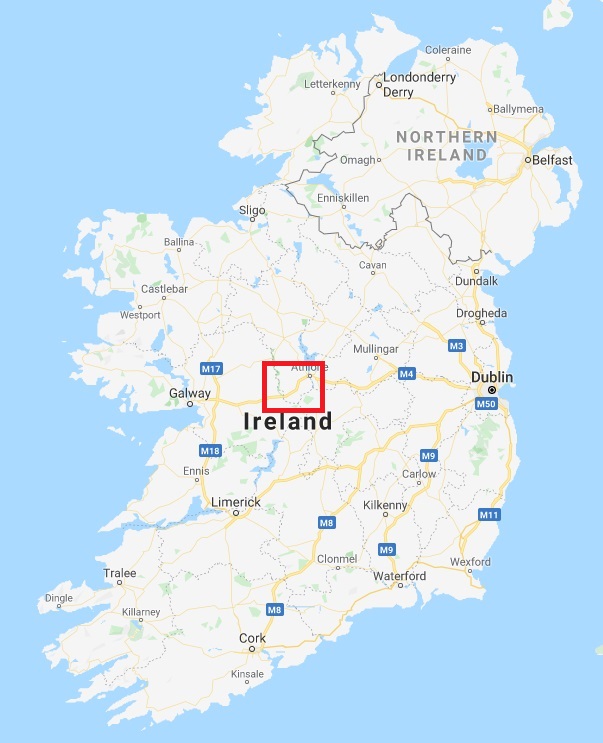 The map on the left below is the country of Ireland. The map on the right is the zoomed-in area where the Rooney and Caulfield families originated in Ireland. (Click on image for larger view.)