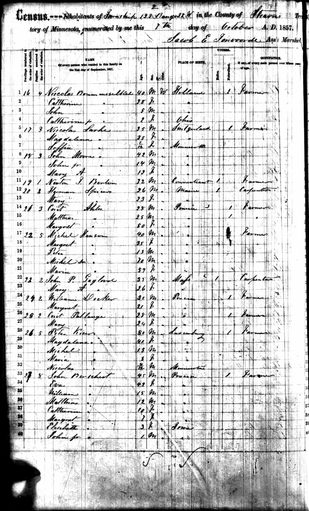 1875 Minnesota Census, Rockville Township, Stearns County, Minnesota
